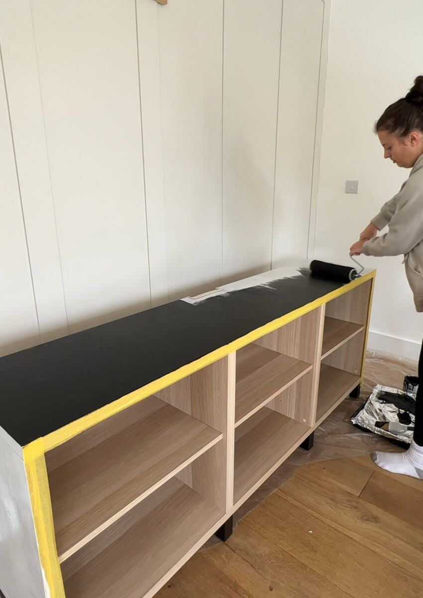 Pro tip: Use a paint roller, especially if you’re new to painting. It’s quick, easy-to-use, and applies an even coat of paint!