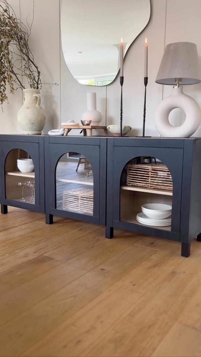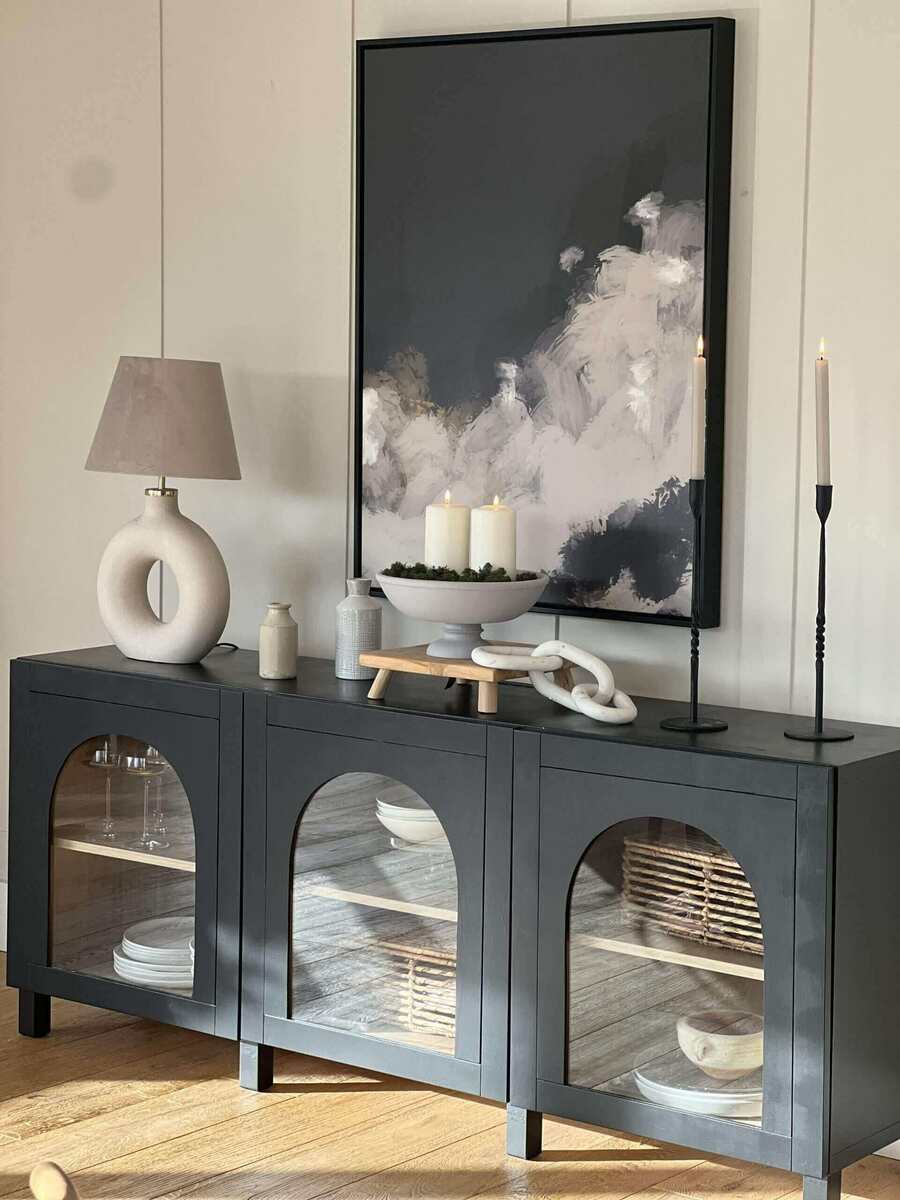 Now it's time to style your customized IKEA Besta storage unit! Add your favorite accessories like ceramic vases, candlesticks, and coffee table books, and place it in various parts of your home. From a foyer table to a sideboard to an entertainment complex, it can serve multiple purposes as per your needs — and add a punch of style to your interior with a piece that speaks to your personality! Remember, friends, with a little creativity and elbow grease; you can transform any piece into something extraordinary!