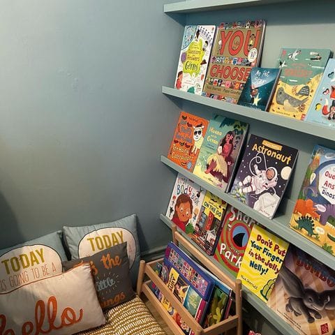 Why we like it: Creating a cozy reading corner using IKEA Mosslanda Picture Ledges is smart. The seamless integration of this reading nook into the family's lounge is a delightful touch. Choosing the larger ledges for their growing book collection is practical thinking. Plus, painting the ledges to match the lounge ensures the reading area feels like a natural part of the room. This is a wonderful example of personalizing IKEA products to fit unique needs and aesthetics.