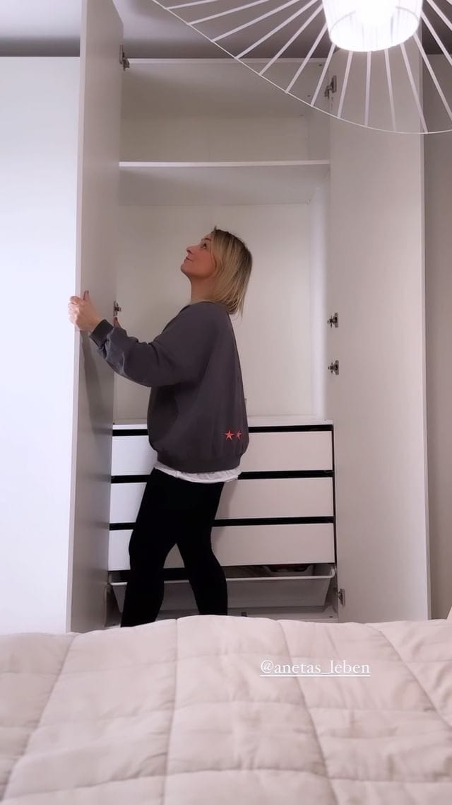 Why we like it: This clever IKEA PAX hack discreetly incorporates a TV into the bedroom. Concealing it behind chic wood panels allows viewing when desired while hidden when not in use. The result seamlessly blends function and style, creating a decorative focal point. Swapping a coat pole for this dual-purpose solution is ingenious. It's an ideal balance of utility and aesthetics.