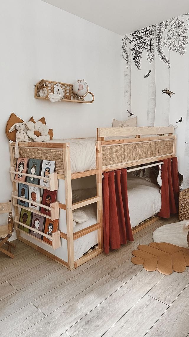 Why we like it: Taking that Kura bed and transforming it into a cabin-style bunk with an integrated bookcase and side railing? Now that's thinking outside the box. We're all about maximizing space and functionality, and this design does just that. It's more than just a bed; it's a cozy nook for reading, a safe haven for sleeping, and a smart storage solution rolled into one. Talk about putting a personal spin on a classic piece!