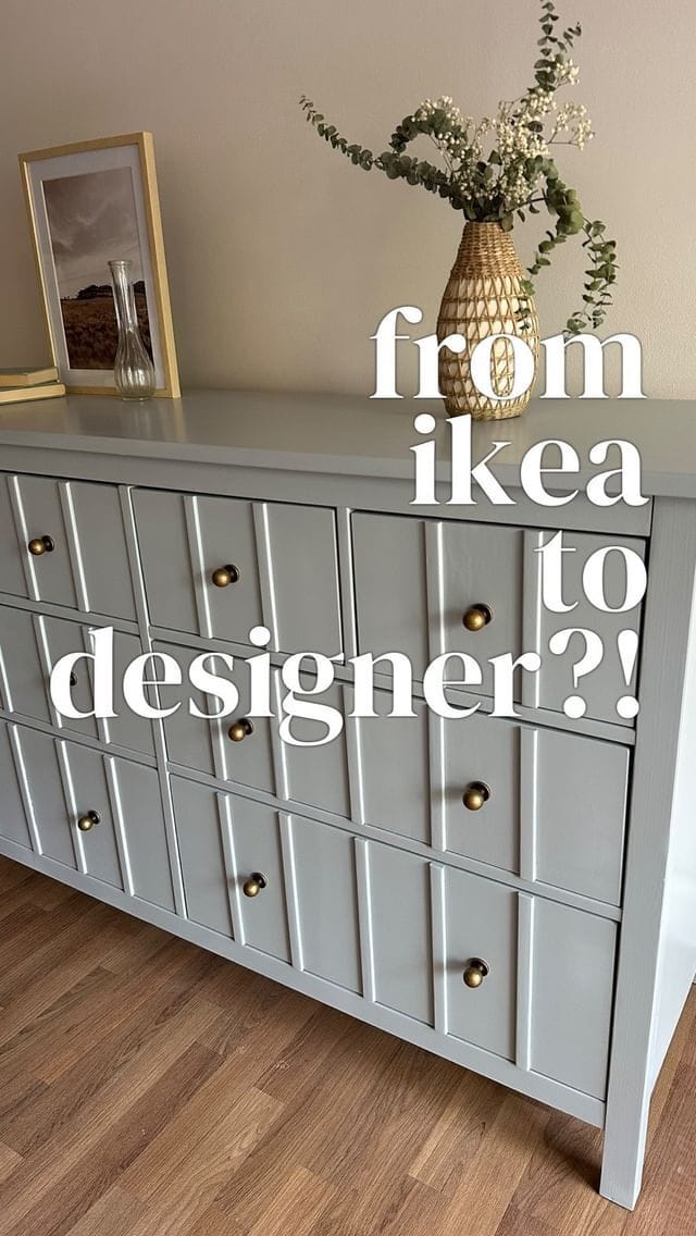 Why we like it: Looking to elevate a simple piece of IKEA furniture? After applying a coat of gray enamel paint, and adding bronze hardware and pine screen trim molding, the look of this old IKEA cabinet completely changed. It's a testament to the idea that even basic furniture can be given a designer touch with some thoughtful tweaks. The result? A piece that stands out and adds character to any space.